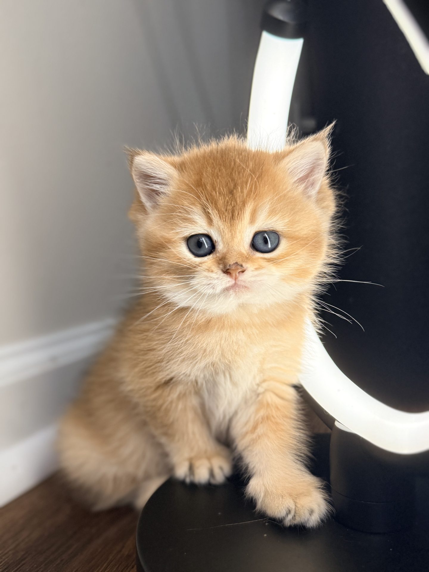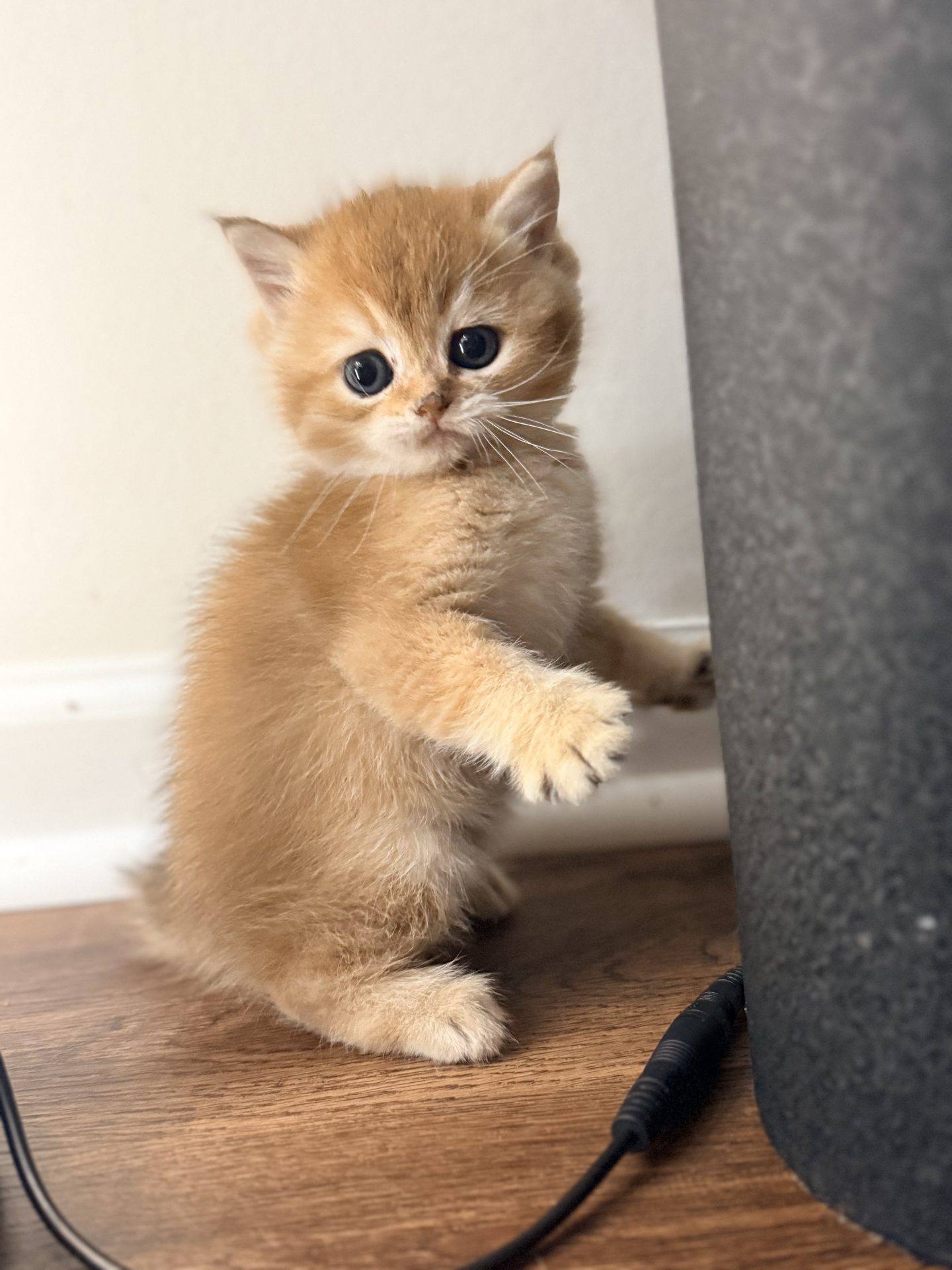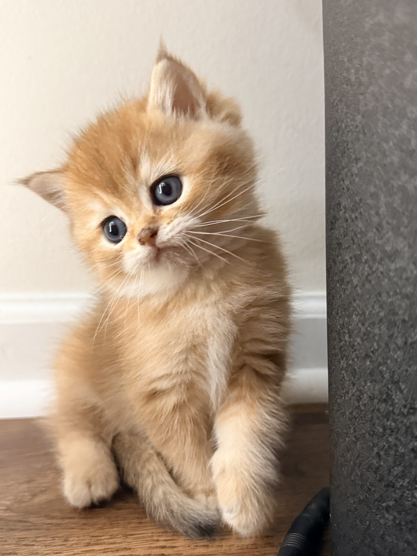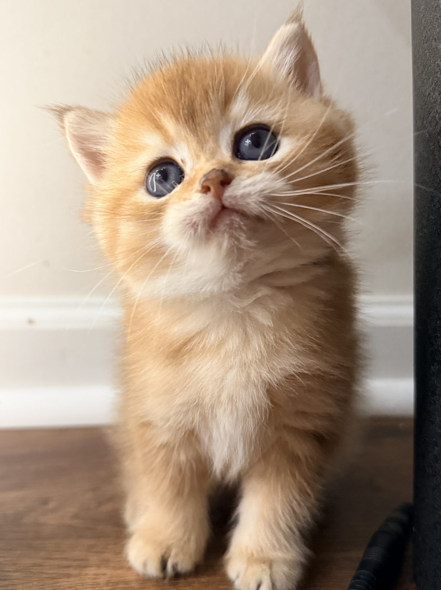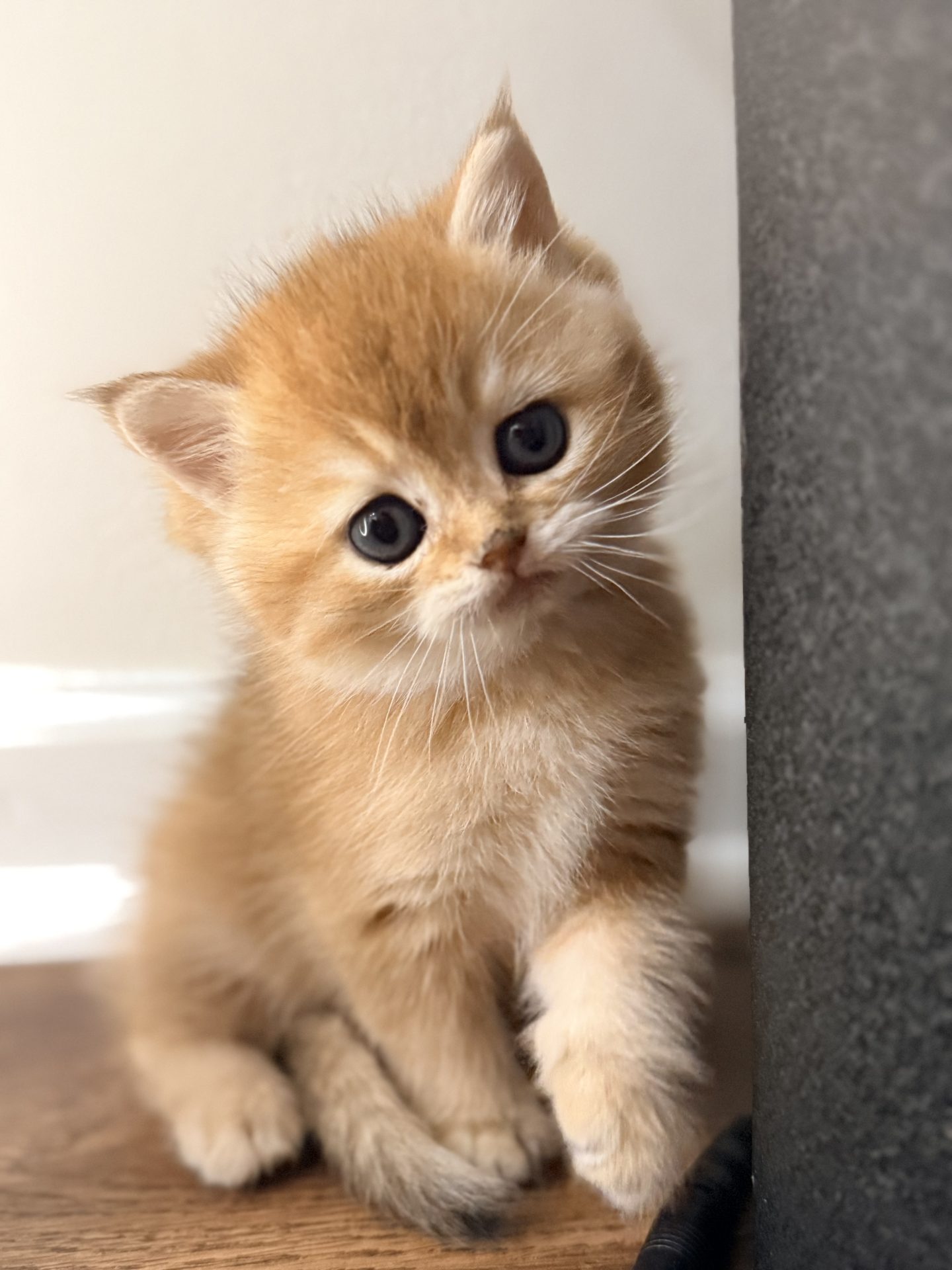 Meet Goldie — our radiant golden kitten whose name says it all. With her soft golden coat and bright curious eyes, she shines with warmth and charm. Playful yet gentle, Goldie brings a little sparkle everywhere she goes.