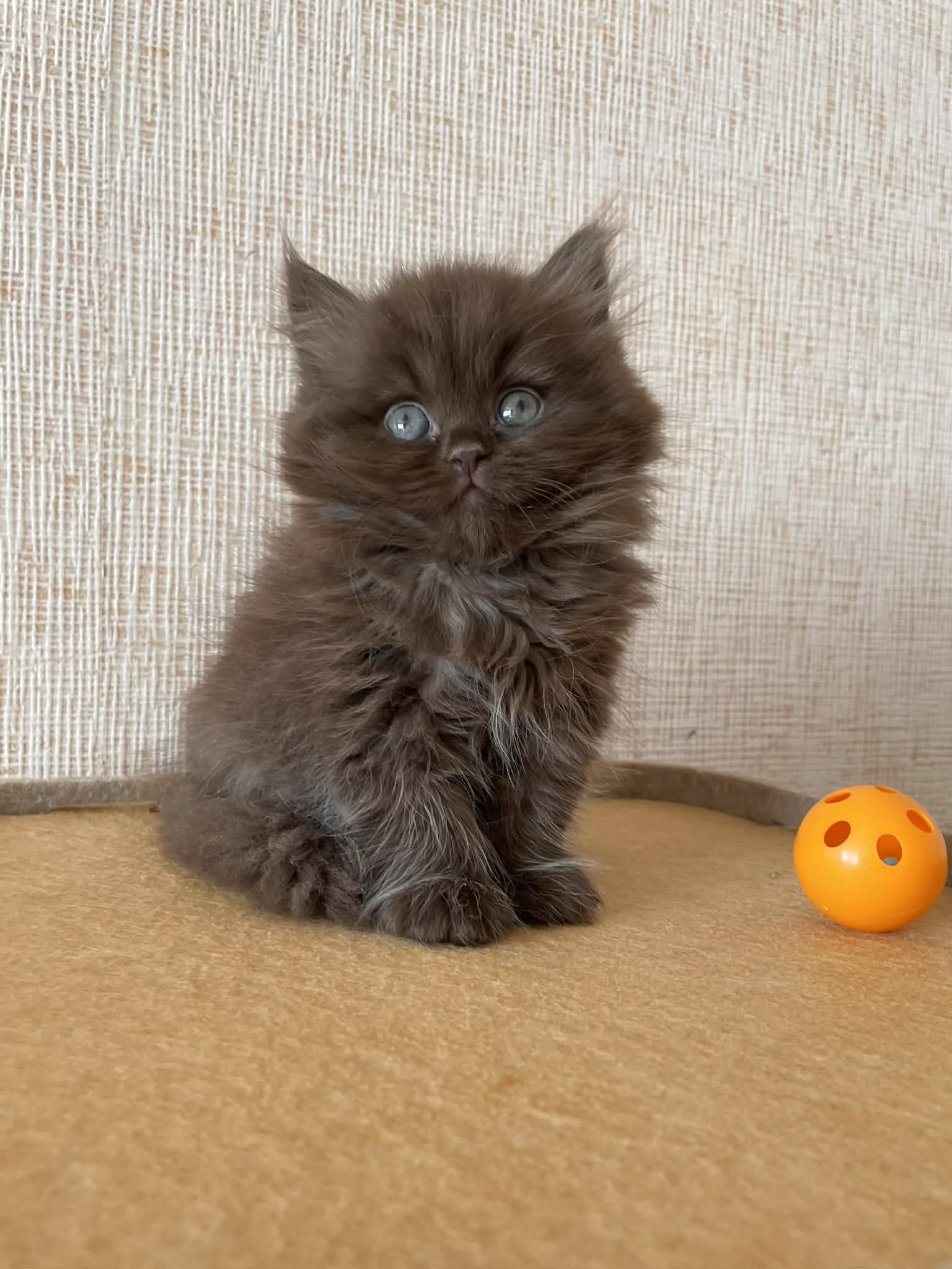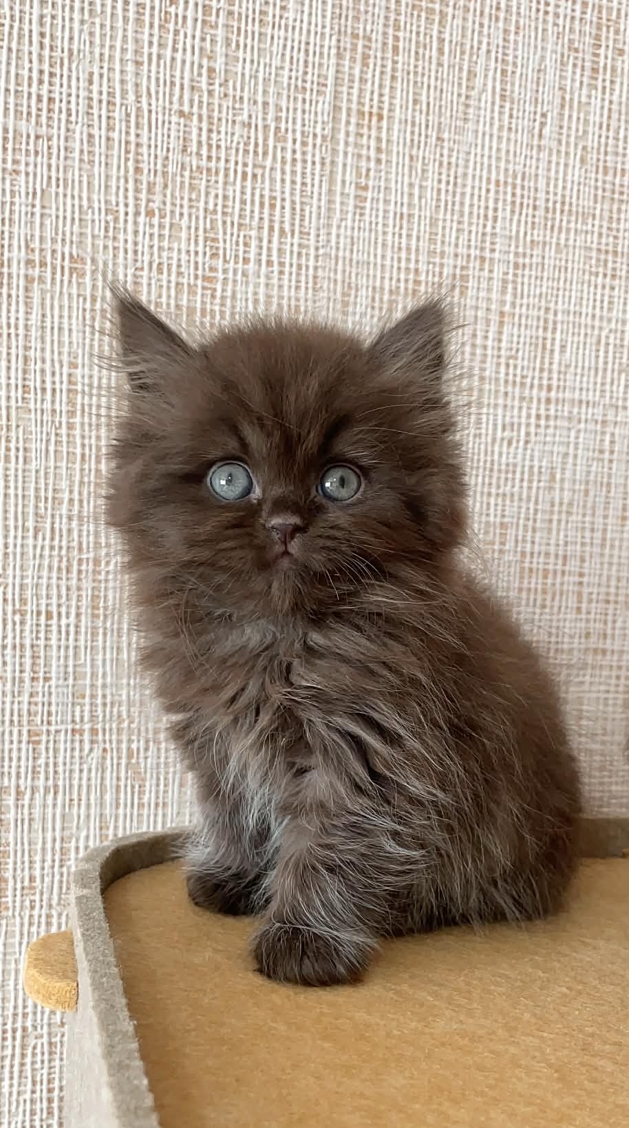 Irresistibly fluffy chocolate kitten, with its rich brown coat, bright eyes, and charmingly curious expression. Compact, cuddly, and full of personality, it’s the perfect little companion to melt hearts instantly.